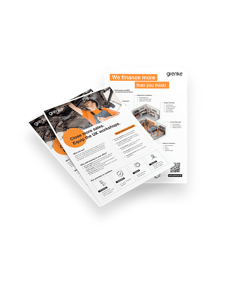 Offer your clients the best in automotive service with our garage equipment financing solutions. By partnering with us, you can help your customers acquire essential tools like lifts, diagnostic equipment, and tire changers through flexible leasing terms, ensuring their garages are well-equipped for success.